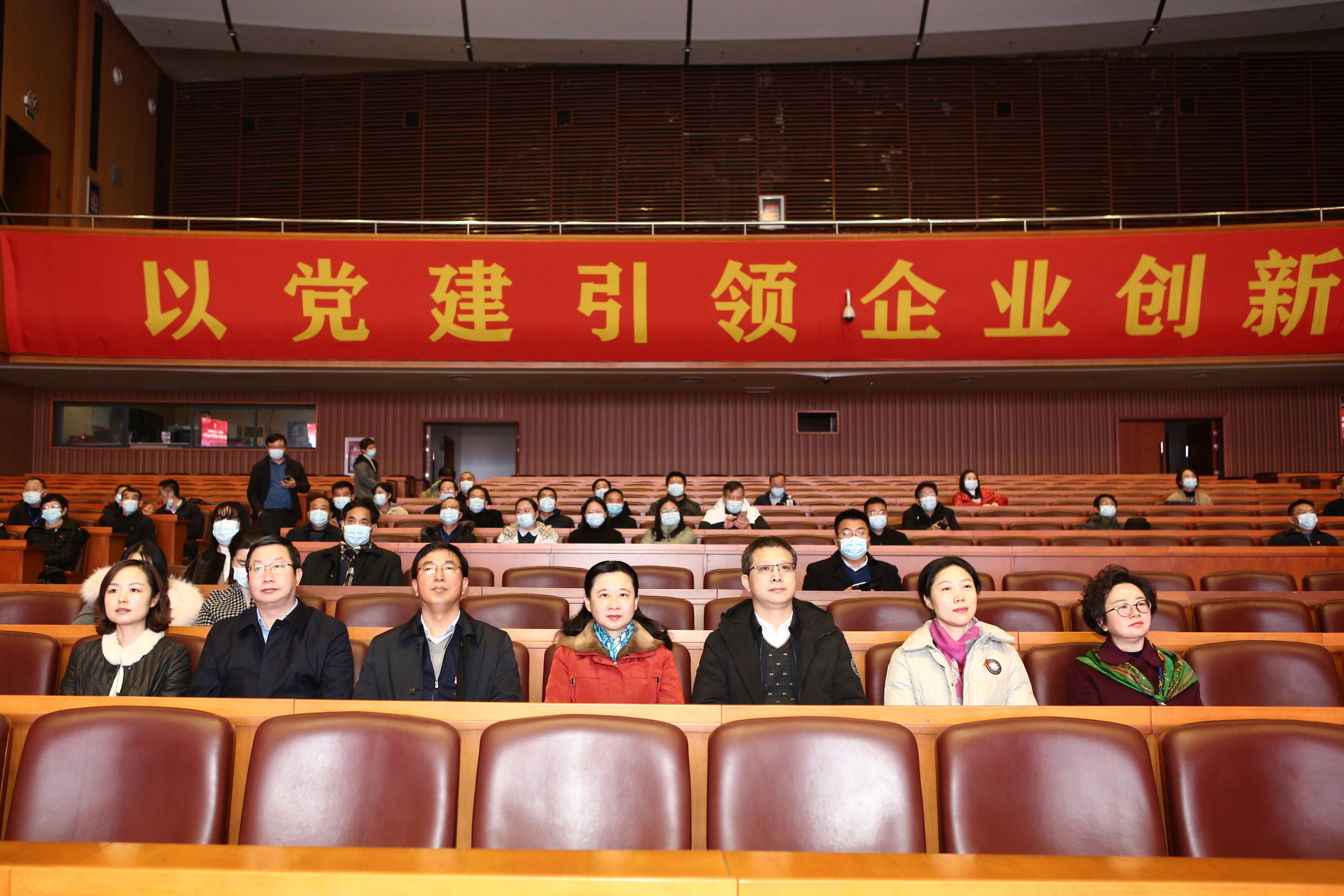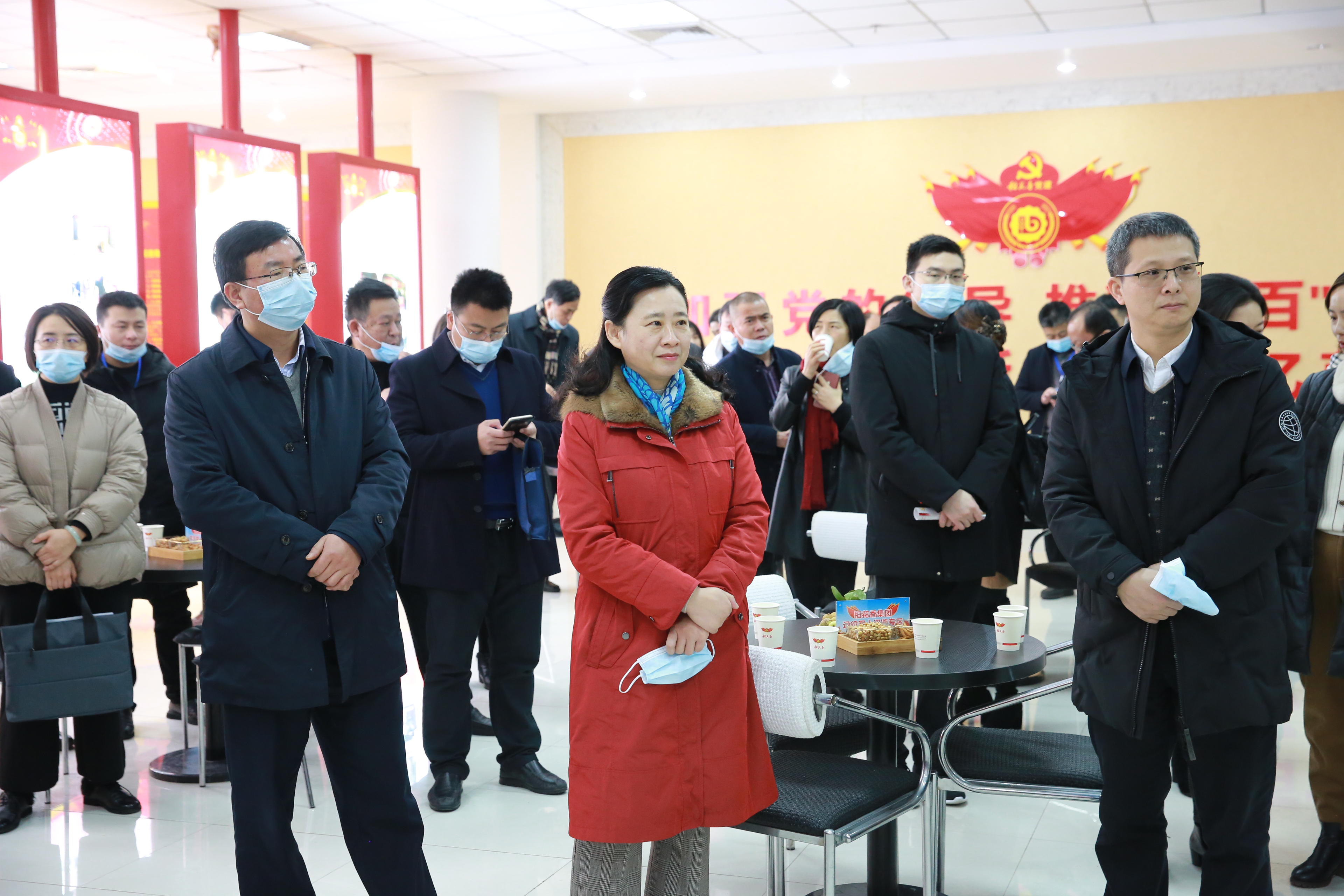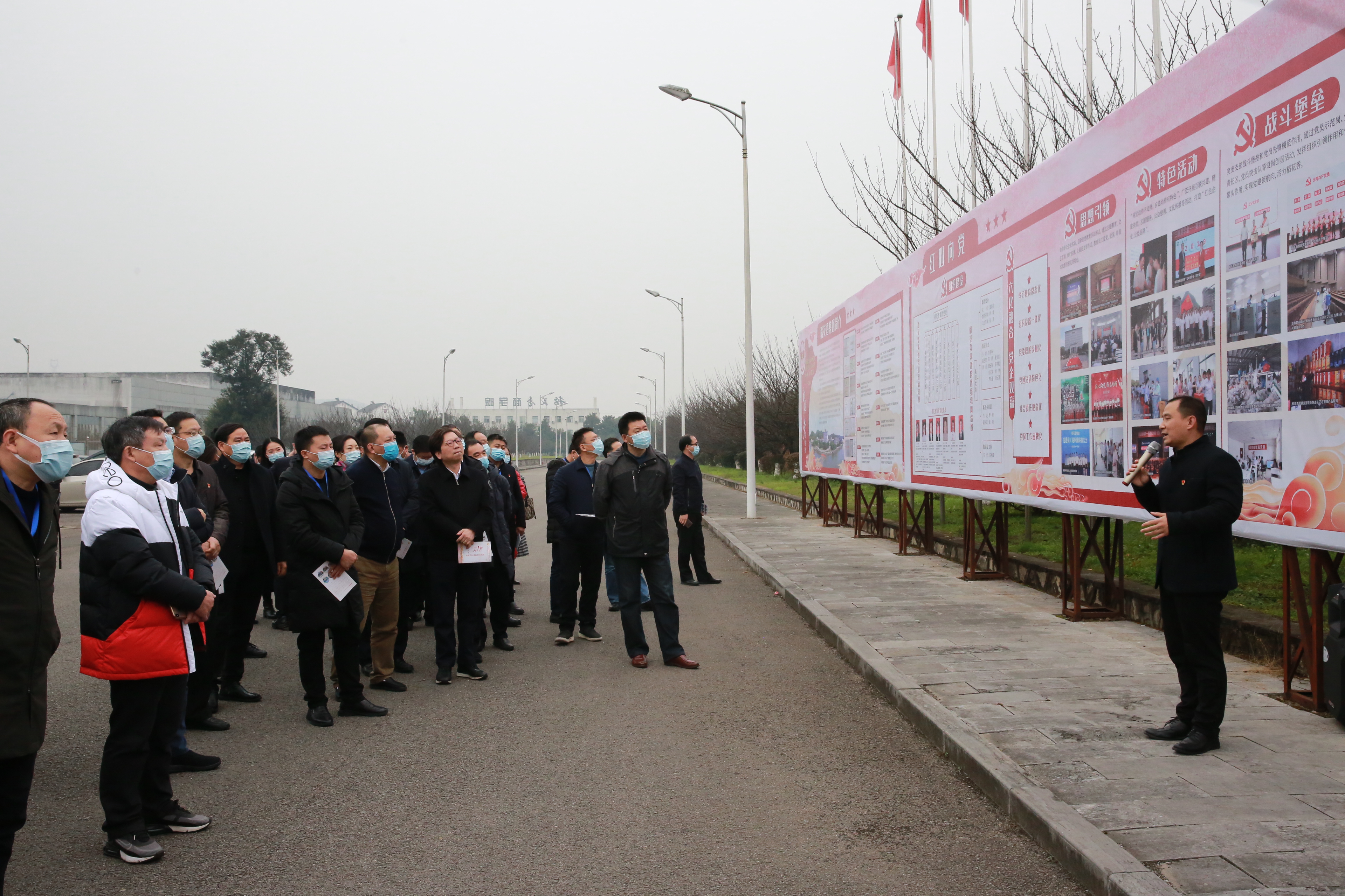 朱春兵(bīng)(前排右三)一(yī)行(xíng)觀看(kàn)《活力黨建 釀造輝煌》稻花(huā)香非公黨建專題片