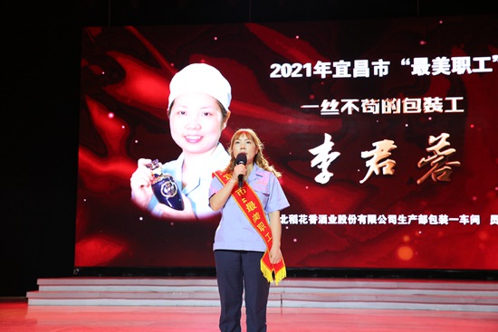 【概要(yào)描述】6月(yuè)22日(rì),由宜昌市(shì)委宣傳部、宜昌市(shì)總工(gōng)會(huì)聯合主辦,“中國(guó)夢•勞動美(měi)——永遠(yuǎn)跟黨走 奮進新征∞程”緻敬2021年(nián)宜昌市(shì)“最美(měi)職工(gōng)”活動在三峽廣電(diàn)中心隆重舉行(xíng),活動±現(xiàn)場(chǎng)表彰了(le)來(lái)自(zì)宜昌市(shì)各行(xíng)各業(yè)的(de)30名優秀職工(gōng)₽,稻花(huā)香酒業(yè)公司車(chē)間(jiān)員(yuán)工(gōng)李君蓉獲此殊榮。