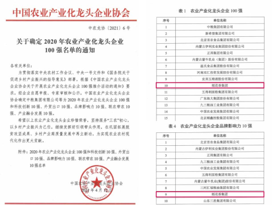 4月(yuè)25日(rì),中國(guó)農(nóng)業(yè)産業(yè)化(huà)龍頭企業(yè)協會(huì)發✘布2020年(nián)農(nóng)業(yè)産業(yè)化(huà)龍頭企業(yè)100強和(hé)專項10強名單,房縣野人泉酒業有限公司位居“農(nóng)業(yè")産業(yè)化(huà)龍頭企業(yè)100強”第10位,并榮獲“2020年(ni'án)農(nóng)業(yè)産業(yè)化(huà)龍頭企業(yè)品牌影(yǐng)響力10強”稱号。