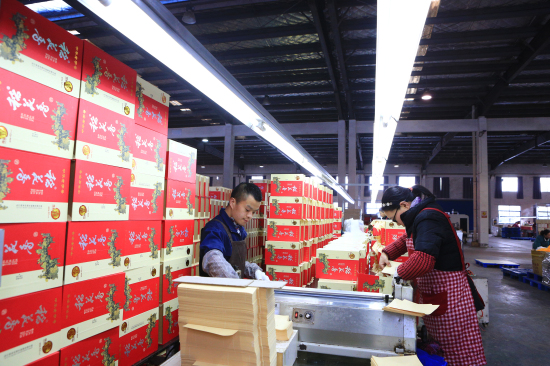 宏晨公司禮盒車(chē)間(jiān)裡(lǐ),工(gōng)人(rén)們開(kāi)料、貼紙(zhǐ)、上(shàng)膠、組裝、擦拭,各司其職。&ldquoα;一(yī)月(yuè)份我們完成訂單530萬套,整體(tǐ)情況良好(hǎo)。2022年(nián)我們有(yǒu)信心沖擊80ε00萬套。”公司相(xiàng)關負責人(rén)介紹。