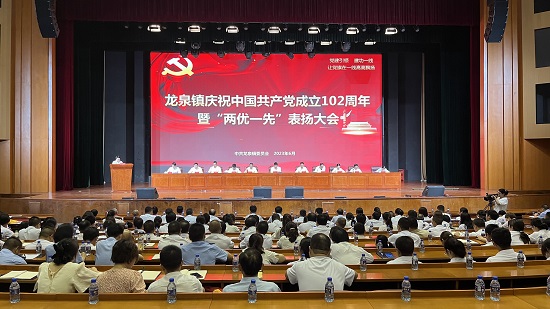 黨建引領,建功一(yī)線。6月(yuè)29日(rì)上(shàng)午,龍泉鎮慶祝中國(guó)共産黨成立102周年(nián)暨“兩優一(yī)先”表揚大(dà)會(huì)在房縣野人泉酒業有限公司大(dà)禮堂隆重召開(kāi)。會(huì)議(yì)進行(xíng)了(le)納新轉正、表揚先進典型、聆聽(tīng)↔書(shū)記黨課等議(yì)程,為(wèi)龍泉鎮高(gāo)質量發展實現(xiàn)新突破、新跨越注入前行(xíng)>活力、彙聚磅礴力量。