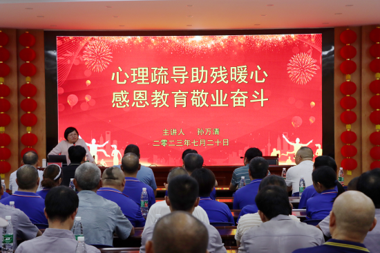 【概要(yào)描述】7月(yuè)20日(rì),為(wèi)進一(yī)步增強殘疾人(rén)心理(lǐ)健康意識,提升情緒調節能(néng)力,緩解心理(lǐ←)壓力,夷陵區(qū)殘聯在崟錦公司舉行(xíng)了(le)以“心理(lǐ)疏導助殘暖心,感恩教育敬業(yè)奮鬥”為(♦wèi)主題的(de)團體(tǐ)心理(lǐ)輔導培訓。崟錦、綜藝、宏晨公司200多(duō)名殘疾職工(gōng)以及企業(y→è)相(xiàng)關負責人(rén)參加培訓。