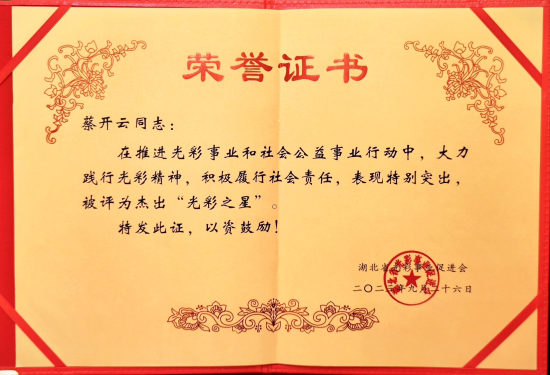 蔡開(kāi)雲獲評湖(hú)北(běi)省傑出“光(guāng)彩之星”