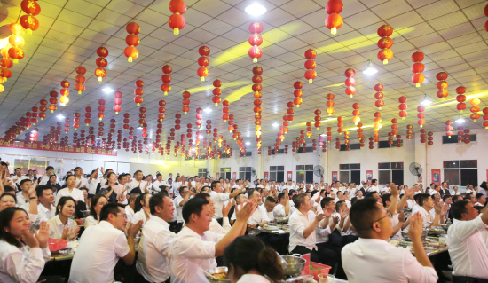 晚宴現(xiàn)場(chǎng),營銷鐵(tiě)軍千人(rén)列陣,整齊入座,在董事(shì)長(cháng)“ 幹杯!”的(de)提議(yì)下(xià),大(dà)家(jiā)紛紛斟滿稻花(huā)香美(±měi)酒一(yī)飲而盡,激情呐喊,揮灑豪邁,氣沖雲霄。