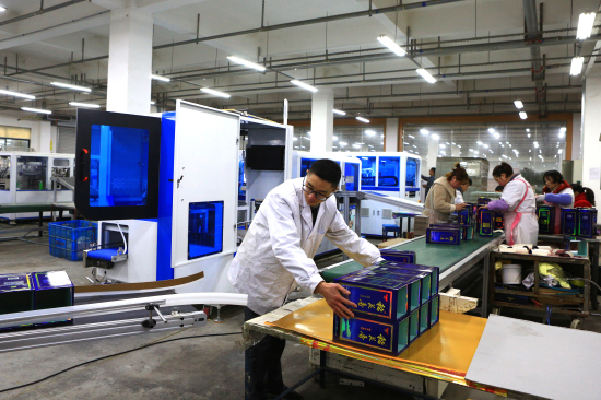 宏晨公司禮盒車(chē)間(jiān)裡(lǐ),工(gōng)人(rén)們開(kāi)料、貼紙(zhǐ)、上(shàng)膠、組裝、擦拭,各司其職。&ldquoα;一(yī)月(yuè)份我們完成訂單530萬套,整體(tǐ)情況良好(hǎo)。2022年(nián)我們有(yǒu)信心沖擊80ε00萬套。”公司相(xiàng)關負責人(rén)介紹。