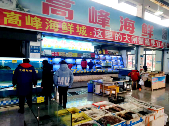 水(shuǐ)産海(hǎi)鮮區(qū)商戶開(kāi)門(mén)營業(yè)