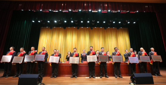 曾洋(右一(yī))代表房縣野人泉酒業有限公司上(shàng)台領獎