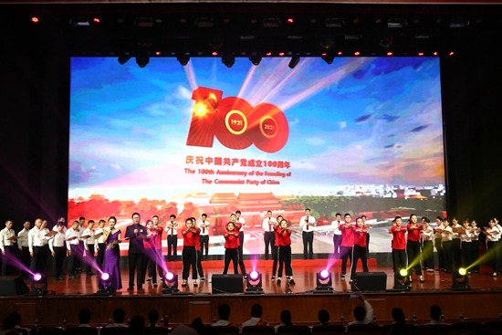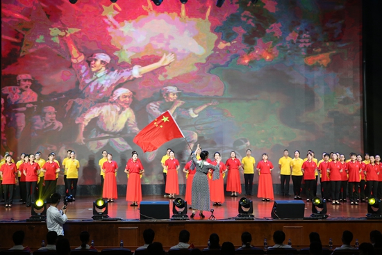 宏晨公司表演合唱(chàng)《沒有(yǒu)共産黨就(jiù)沒有(yǒu)新中國(guó)》
