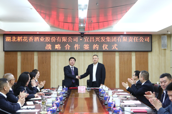 【概要(yào)描述】4月(yuè)10日(rì),湖(hú)北(běi)稻花(huā)香酒業(yè)股份有(yǒu)限公司與宜昌興發集團有(yǒu)限責任公司戰略合作(zuò)簽約儀式在房縣野人泉酒業有限公司舉行(xíng),雙方以酒為(wèi)媒、文(wén)旅融合,将在産品銷售、旅遊拓展、品牌推廣、黨建交流等方面深化(∞huà)互信合作(zuò),共享資源、共創機(jī)遇、共謀發展。