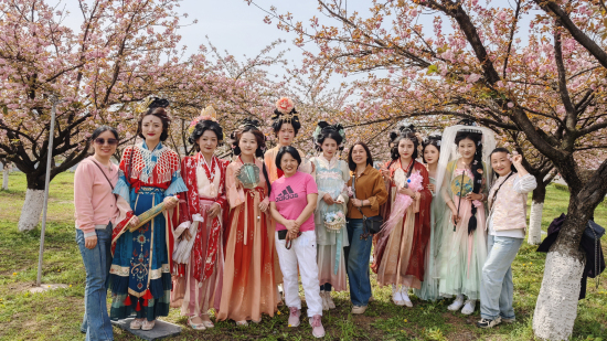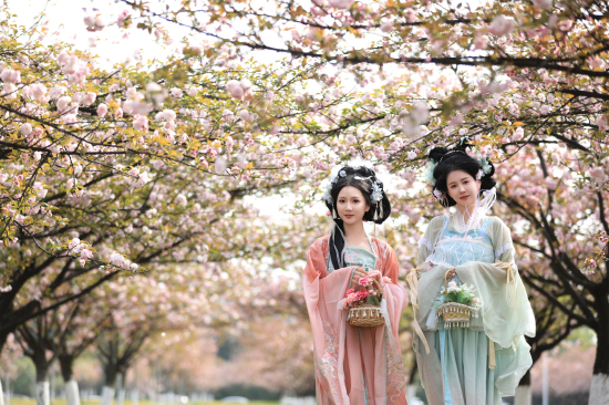 太極表演在櫻花(huā)林(lín)中起勢,白(bái)衣翩跹與櫻共舞(wǔ),剛柔并濟展現(xiàn)東↓(dōng)方美(měi)學,引得(de)遊客紛紛“拜師(shī)學藝”。古琴、古筝、長(cháng)笛、琵琶演奏國(guó)風(fēng♦)民(mín)樂(yuè),清音(yīn)繞梁,讓櫻林(lín)更添詩意,引得(de)遊客駐足靜(jìng)聽(tīng)。16名模特身(shēn)著(zhe)漢服與旗袍在園區(qū)巡遊,衣袂翻飛(fēi)間(jiān)仿佛穿越千年(nián),被遊客“圍堵”合影(yǐng),引爆互 動打卡熱(rè)潮。